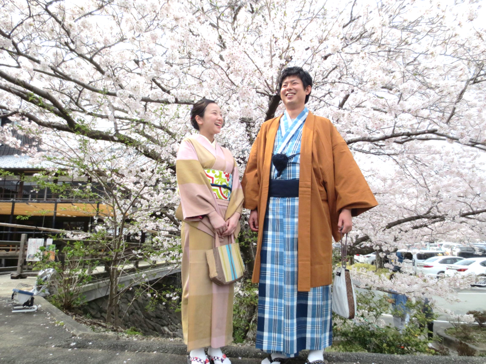 「きもの⽇和あやの」ならではの、松阪⽊綿、伊勢⽊綿、伊勢型もめんの着物姿で、五十鈴川の桜を楽しみながら、おかげ横丁を散策してみてはいかがでしょうか。期間中、着物レンタルをされた⽅に、ささやかなプレゼントをご⽤意します。