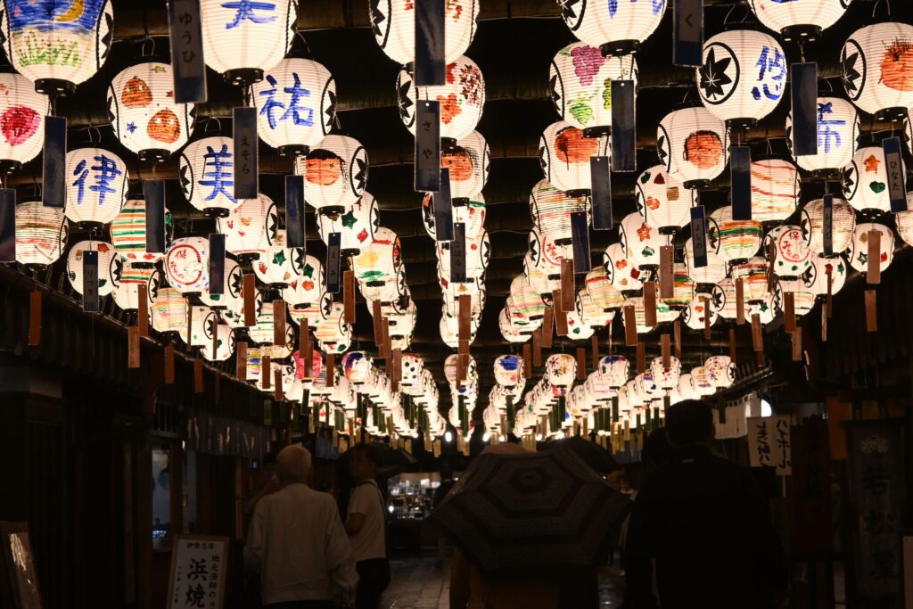 地域の子どもたちの手作り提灯や名入れ提灯など約1,500個を灯します。心安らぐひと時をお過ごしください。