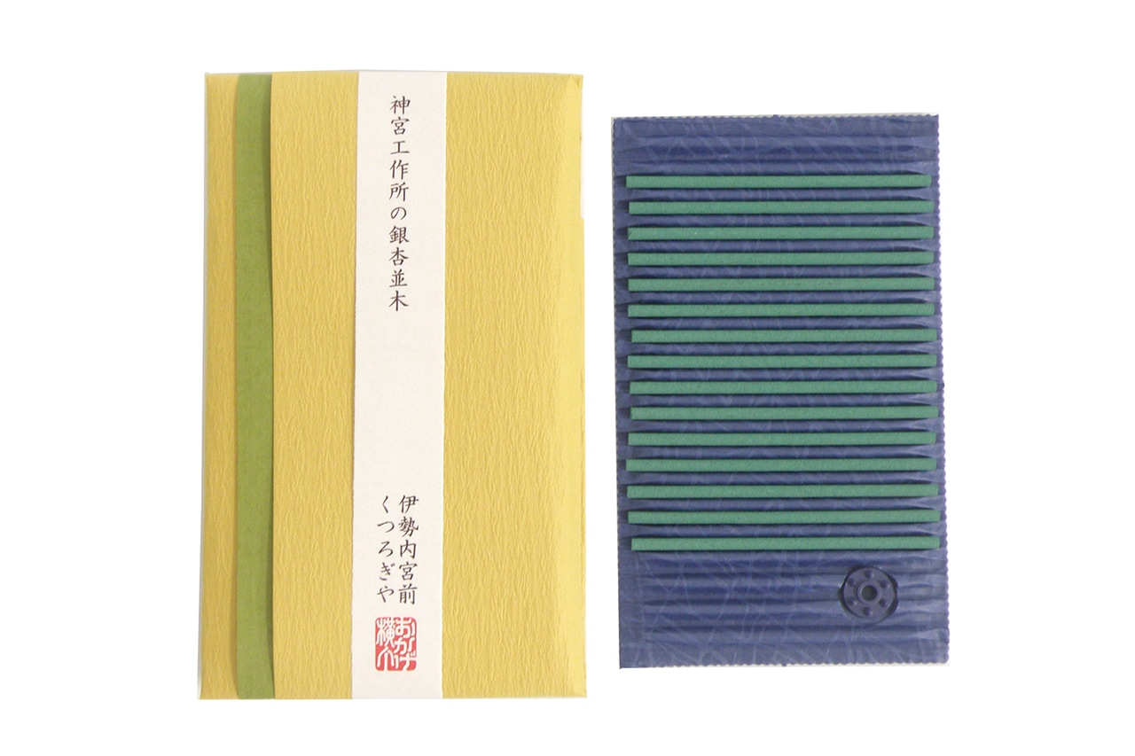 伊勢神宮の宇治工作所には銀杏並木があり、秋になると辺り一面に黄葉が溢れます。そんな銀杏並木をイメージした香りです。緑色のお香が燃えるにつれ黄色に変わり、銀杏の色変わりをイメージしております。