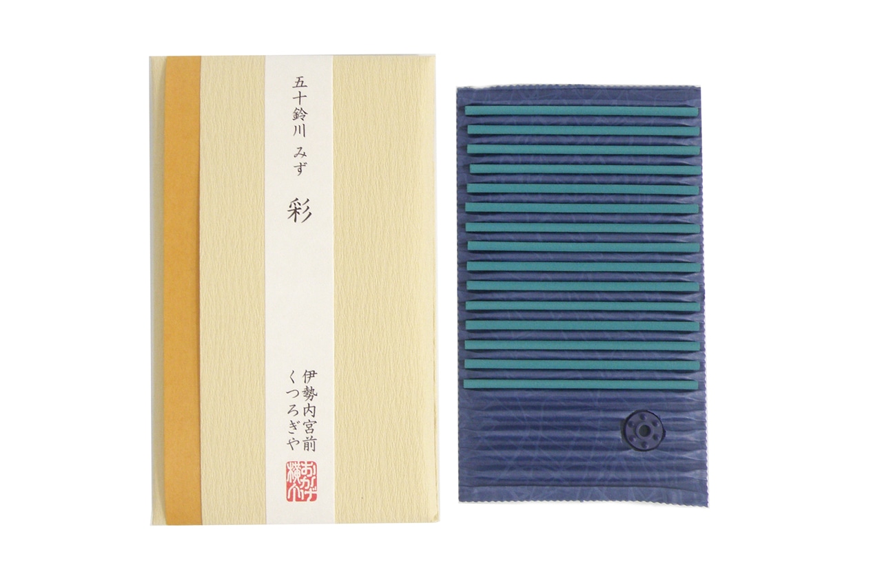 くつろぎや一番人気の「五十鈴川みず」。その香りがベースの、季節限定のお香です。秋は「彩」。五十鈴川に紅葉が浮かぶ様子をイメージし、ウッディ調の香料を合わせております。