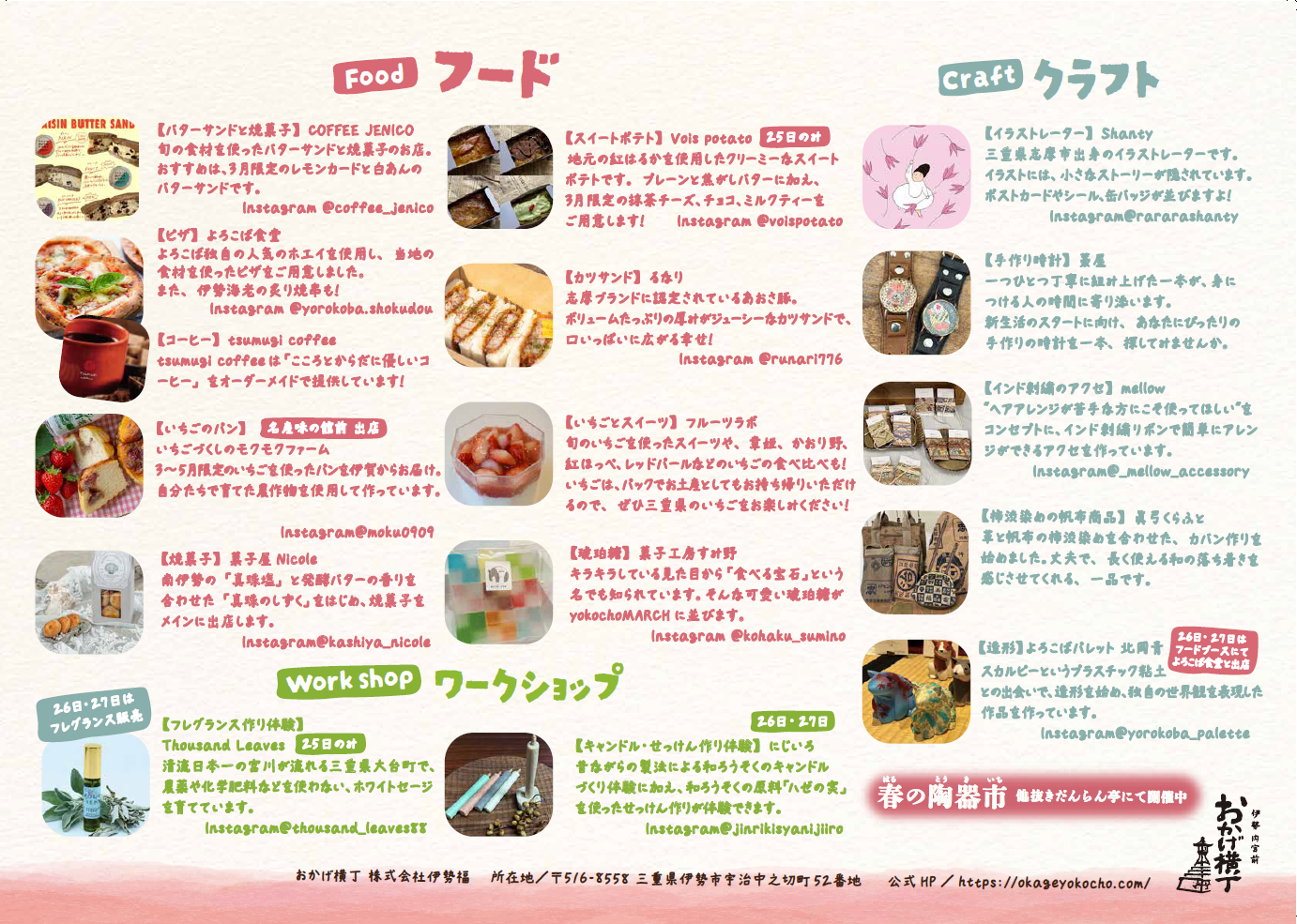 おかげ横丁で春を見つける「yokochoMARCHE -よこちょうマルシェ -」。