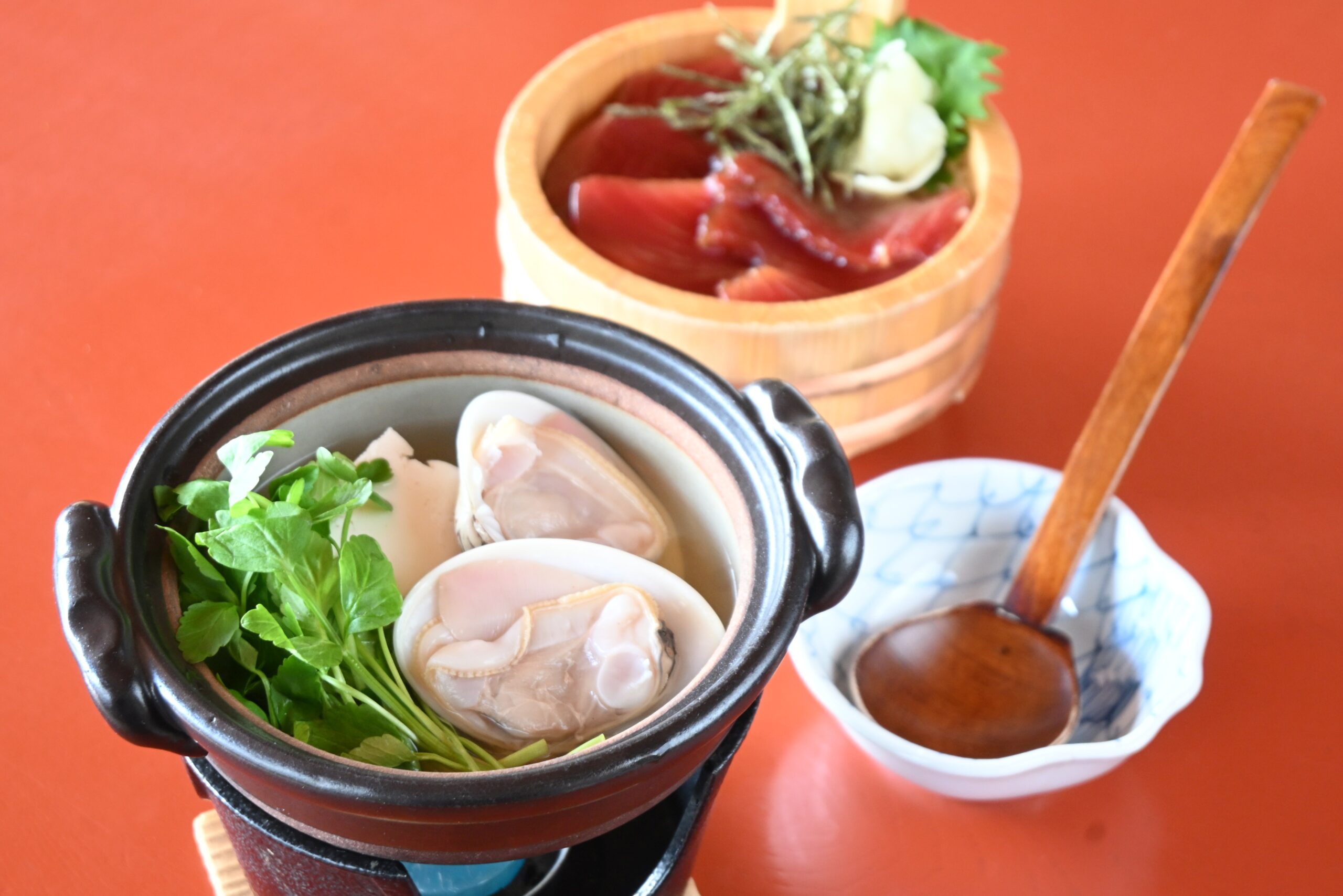 ――蛤とせりの小鍋、てこね寿し(ミニサイズ)