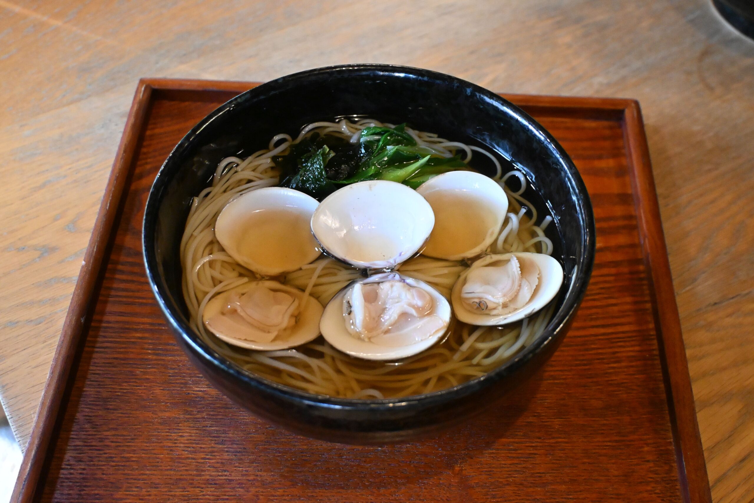 縁起の良いオリジナル伊勢そうめんに、はまぐりとわかめが入った正に寒いこの時期ならではの早春にゅうめんです。