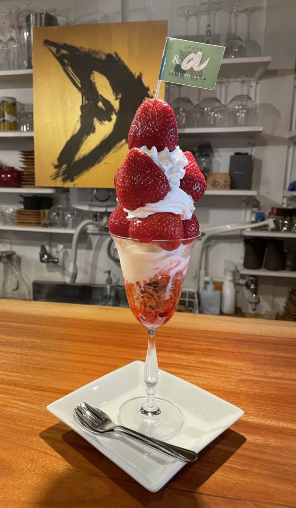 松阪市で伝説的人気を誇った喫茶店の味を継ぐ「月見やぐら&a」 が手がける特別パフェ。全国入賞いちご 「よつぼし・章姫」 を贅沢に使用した、ここでしか味わえないスペシャルスイーツです。