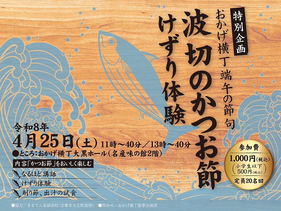 削りたてのかつお節の口いっぱいに広がる旨味や香ばしさ、そして日本のだし文化を五感でお楽しみください。