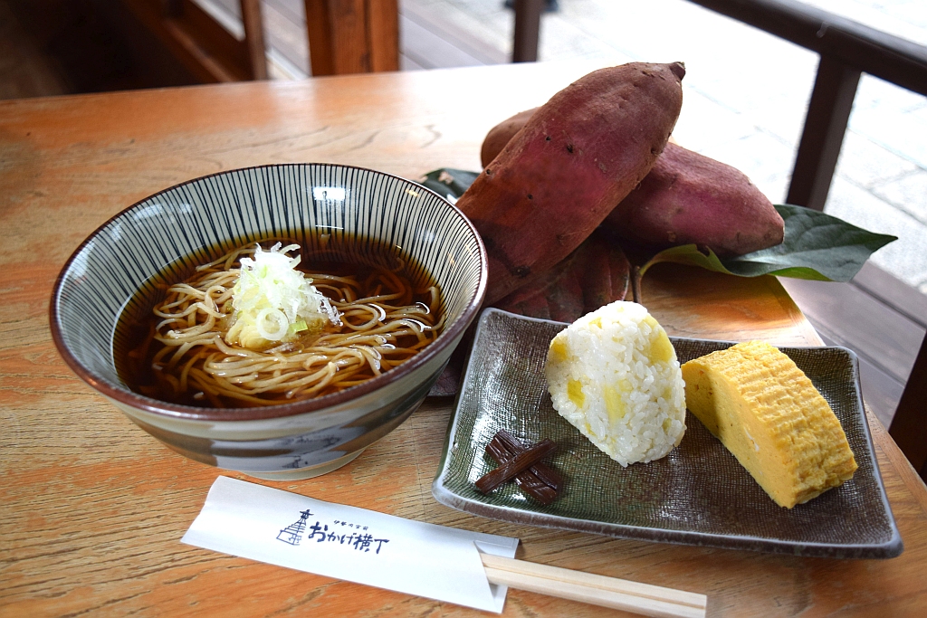 ◇団五郎茶屋:朝そばセット(さつまいものおにぎり) 700円
