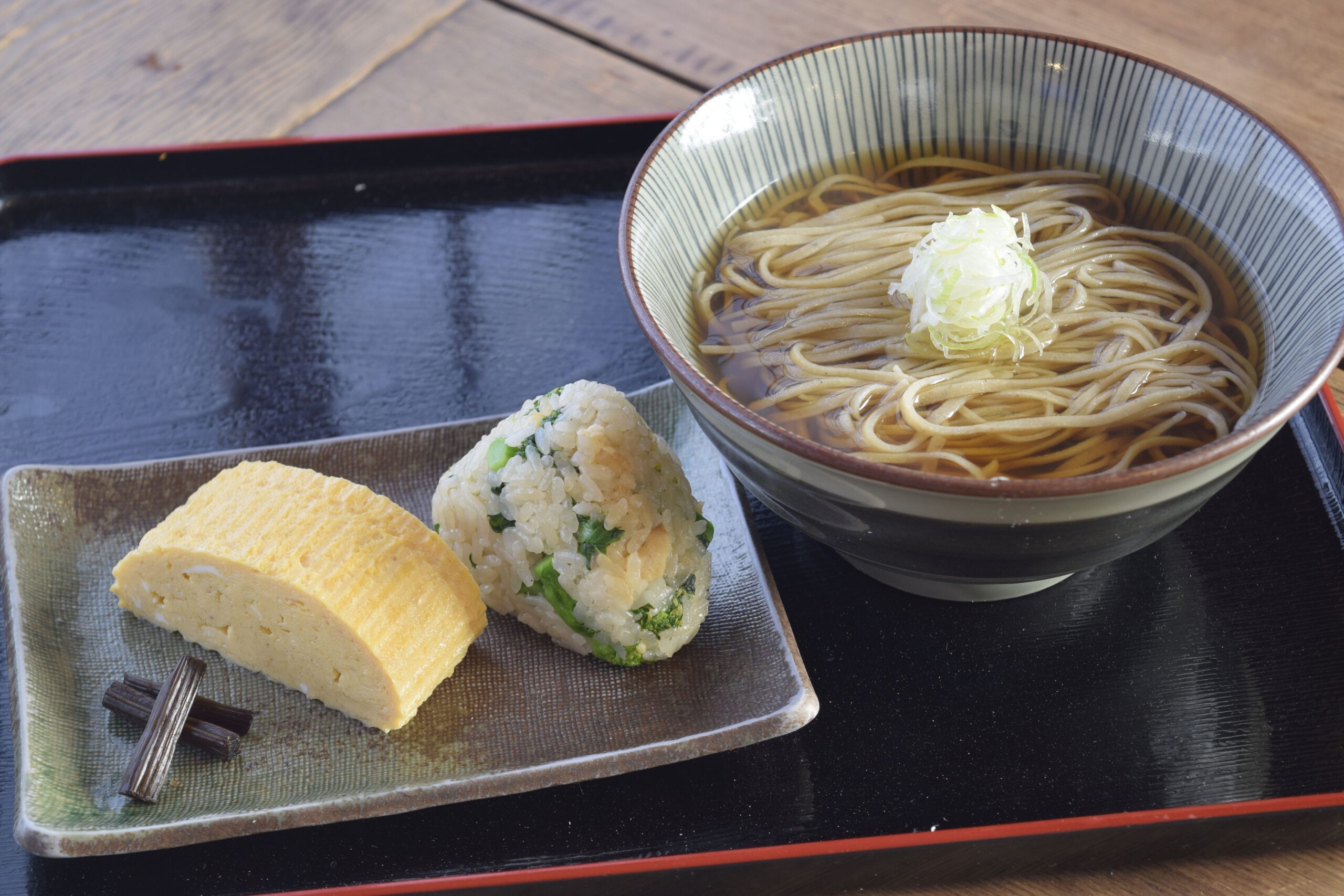 団五郎茶屋 朝そばセット(菜の花のおにぎり) 700円