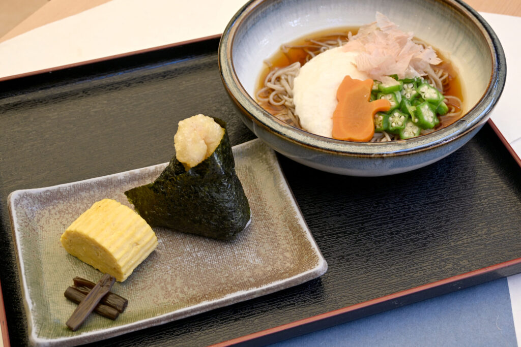 とろろオクラそば、えび天おにぎり、出汁巻玉子
